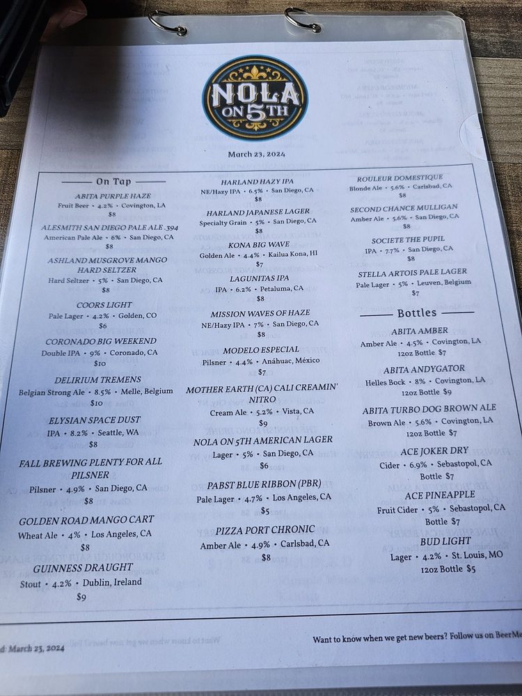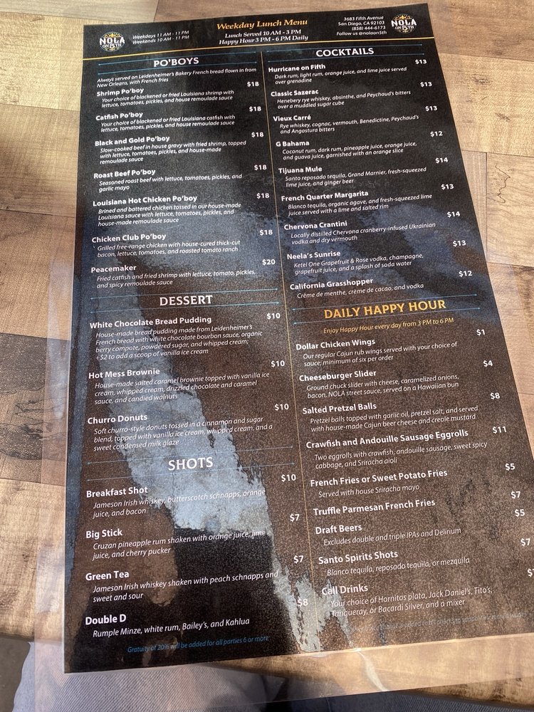 Introducing NOLA on 5th, a cozy comfort food spot in San Diego specializing in Cajun/Creole cuisine. Located at 3683 Fifth Ave, this restaurant offers a range of amenities, including delivery, takeout, and cateringservices. Known for its welcoming atmosphere and top-notch service, NOLA on 5th is a popular choice for groups or intimate dinners. Customers rave about the delicious food, with favorites like the Louisiana hot chicken and bottomless mimosas on weekends. The bar staff, like Angie, receives high praise for their expertise in crafting tasty drinks. With gender-neutral restrooms, outdoor seating, and pet-friendly policies, NOLA on 5th caters to a diverse crowd. So if you're in the mood for authentic Cajun flavors in a lively setting, make sure to stop by NOLA on 5th for a memorable dining experience.